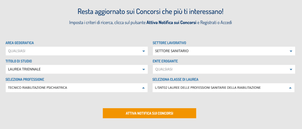 Per ricevere aggiornamenti sui concorsi in atto rivolti ai Fisioterapisti, attiva una notifica su infoConcorsi selezionando i parametri di tuo interesse.