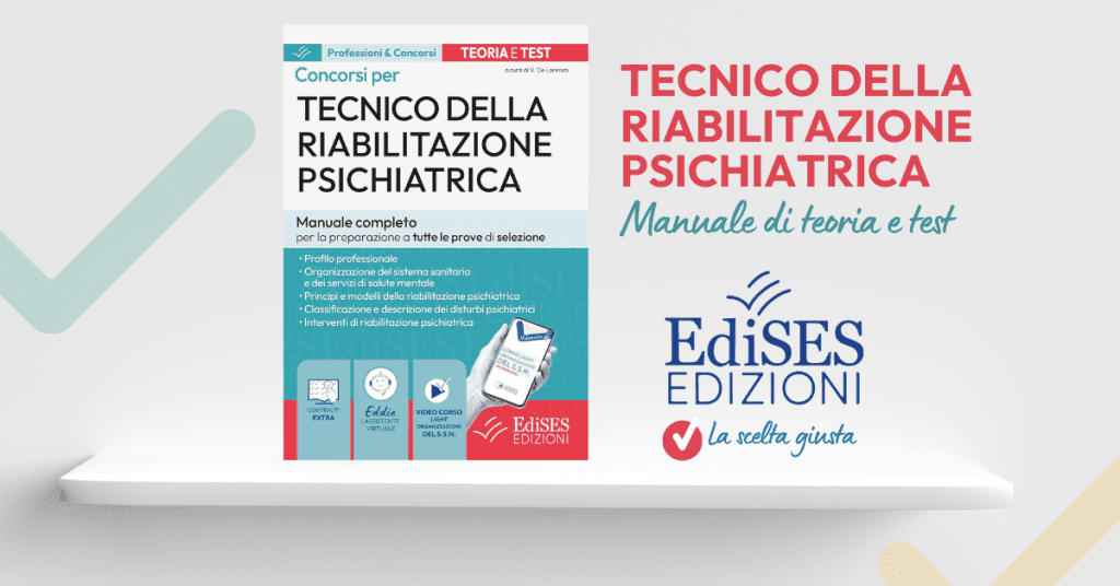 Per una preparazione efficace ai concorsi è disponibile il nuovo manuale EdiSES di teoria e test per i Concorsi per Tecnico della riabilitazione psichiatrica: troverai i principali modelli teorici della riabilitazione psichiatrica e l’evoluzione delle nozioni di salute mentale e malattia psichiatrica. Il manuale affronta le tematiche dei disturbi psichiatrici e della psicofarmacologia e gli interventi di riabilitazione psichiatrica.