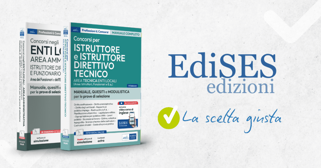 Per una preparazione completa, ti consigliamo i volumi di teoria e test per Istruttore tecnico e istruttore direttivo tecnico negli enti locali e per Istruttore direttivo e Funzionario – Area amministrativa degli enti locali con software di simulazione in omaggio