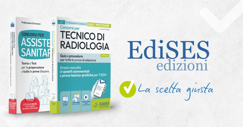Per affrontare al meglio le prove, ti consigliamo i Manuali EdiSES di teoria e test per Assistenti sanitari e TSRM con procedure operative e simulazioni online e i nostri corsi di formazione in aula virtuale con docenti esperti: