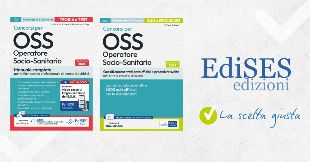 Per una preparazione completa ai concorsi per Operatori Socio Sanitari scegli i volumi EdiSES: Manuale di teoria e test con legislazione sanitaria in omaggio e il manuale di Quiz e procedure con software di simulazione in omaggio.