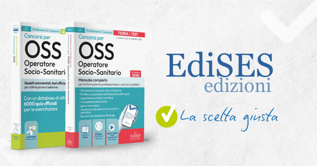 Per una preparazione completa ai concorsi per Operatori Socio Sanitari scegli i volumi EdiSES: Manuale di teoria e test con legislazione sanitaria in omaggio e il manuale di Quiz e procedure con software di simulazione in omaggio.