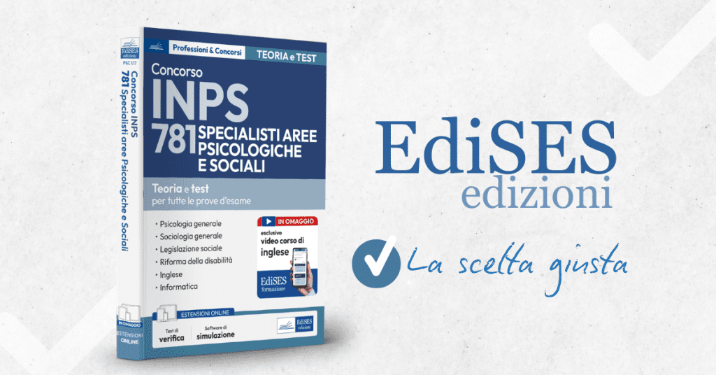 Per la preparazione a tutte le fasi di selezione è disponibile il Manuale EdiSES di teoria e test Concorso INPS 781 Specialisti aree Psicologiche e Sociali. In omaggio con il volume il software di simulazione e il video-corso di Inglese.
