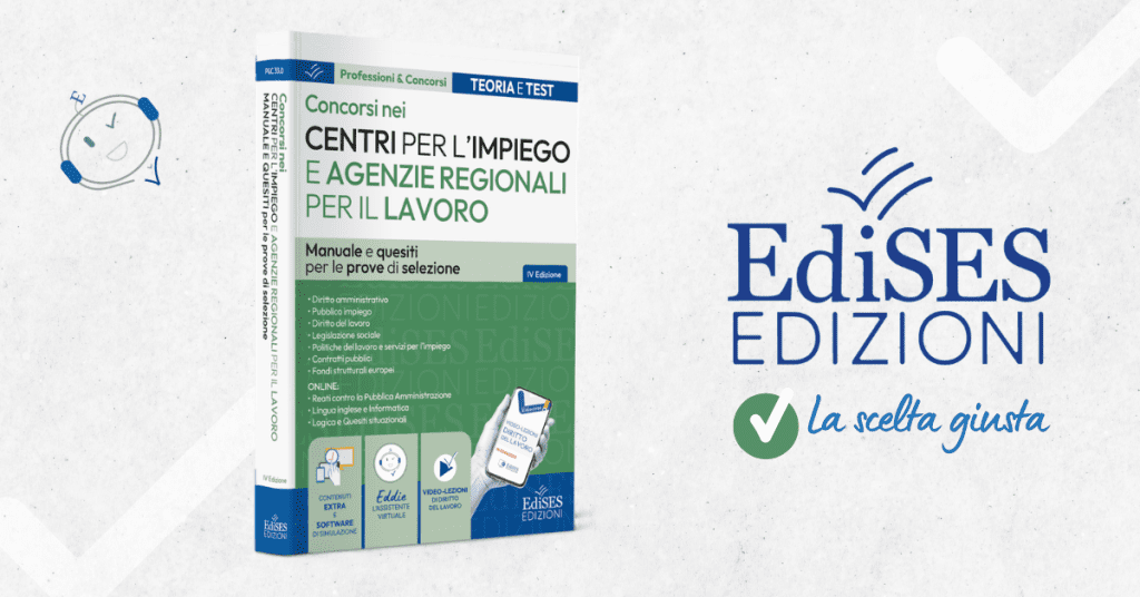 Puoi prepararti alla prova scritta con il nuovo Manuale EdiSES per i Concorsi nei Centri per l’impiego (CPI) e nelle Agenzie regionali per il lavoro aggiornato alle ultime novità normative.