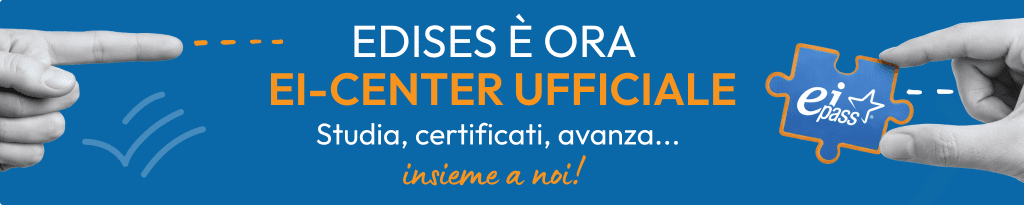 Oltre alla preparazione teorica, da oggi EdiSES amplia il suo ecosistema formativo diventando Ei-Center EIPASS. Non solo manuali e simulatori: ora puoi completare il tuo percorso di studio ottenendo una certificazione informatica ufficiale. Dalla scuola alla sanità, fino alla pubblica amministrazione, le certificazioni EIPASS daranno una marcia in più alla tua carriera.