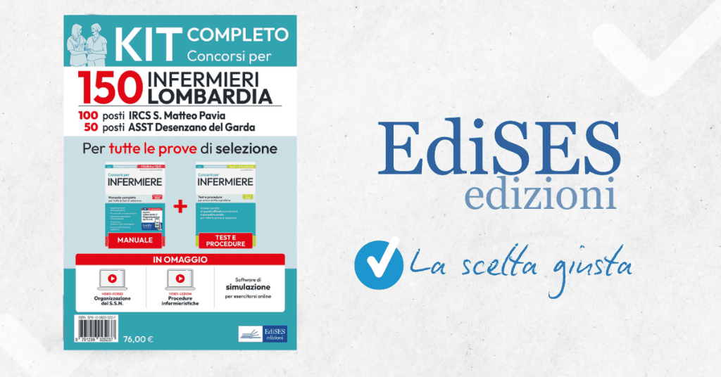 Per una preparazione completa ai concorsi per infermieri è disponibile il Kit Completo per i Concorsi 150 Infermieri in Lombardia composto da Manuale di teoria con legislazione sanitaria in omaggio e volume di Test e procedure con software di simulazione in omaggio.